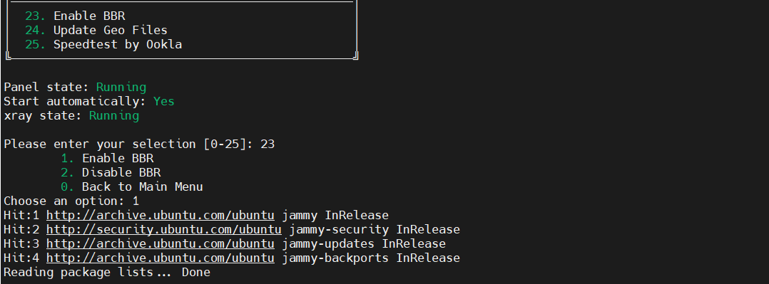 内置bbr加速,输入x-ui显示菜单,输入数字23,根据提示再输入1,即可自动一键安装bbr加速,提升科学上网速度。